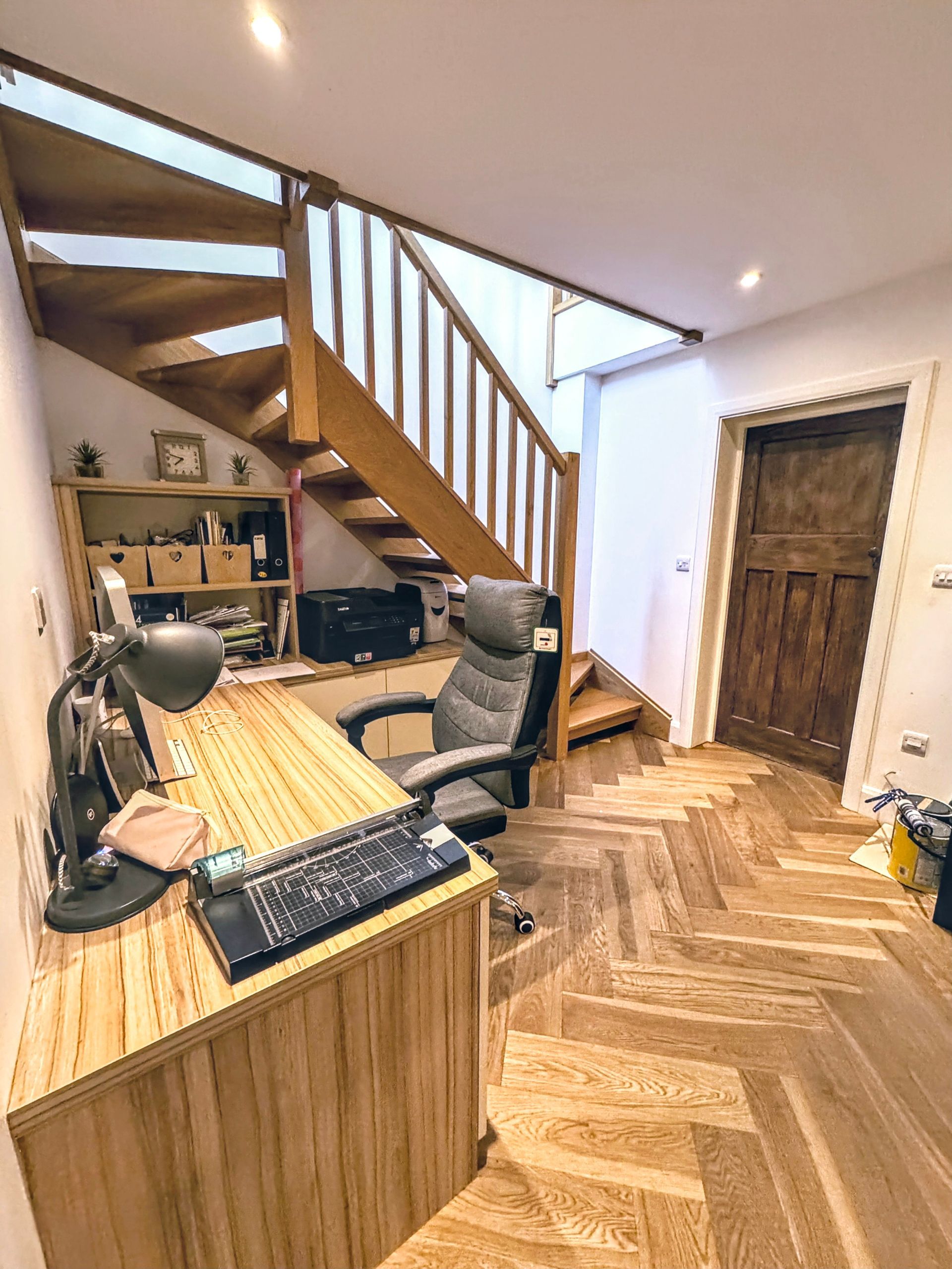 A new kitchen and dining space, an additional office and shower room, on the ground floor. With additional bedrooms and bathrooms on the upper floors.